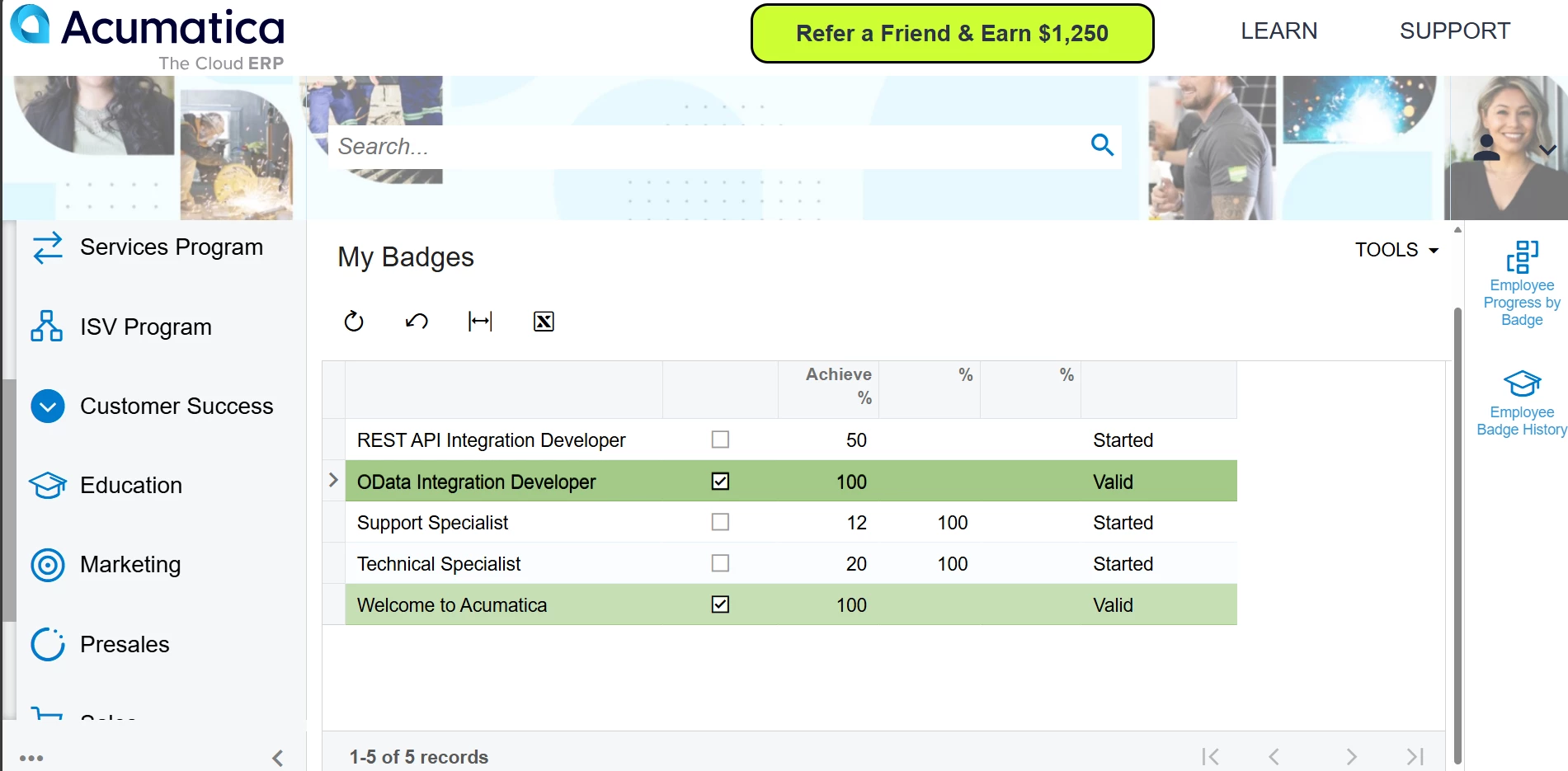 - When the form opens, click on the badge name: Getting Started with Acumatica ERP.