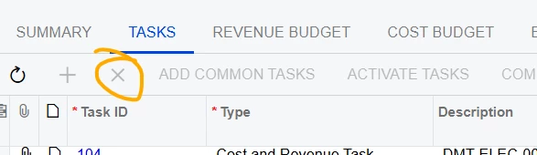 -Delete lines in the following tabs: Task, Revenue Budget, and Cost Budget,