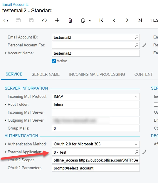 I am currently setting up multiple Email Accounts (Exchange Online SMTP/IMAP/POP3) for a client in Acumatica 2025 R1.