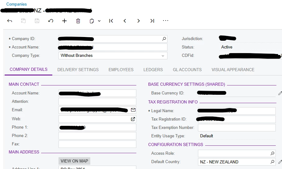 This box appears on the form only if multiple branches or companies are configured in the system and the currently signed-in user has access to multiple branches or companies on the form selected in the Screen ID box of the Summary area.