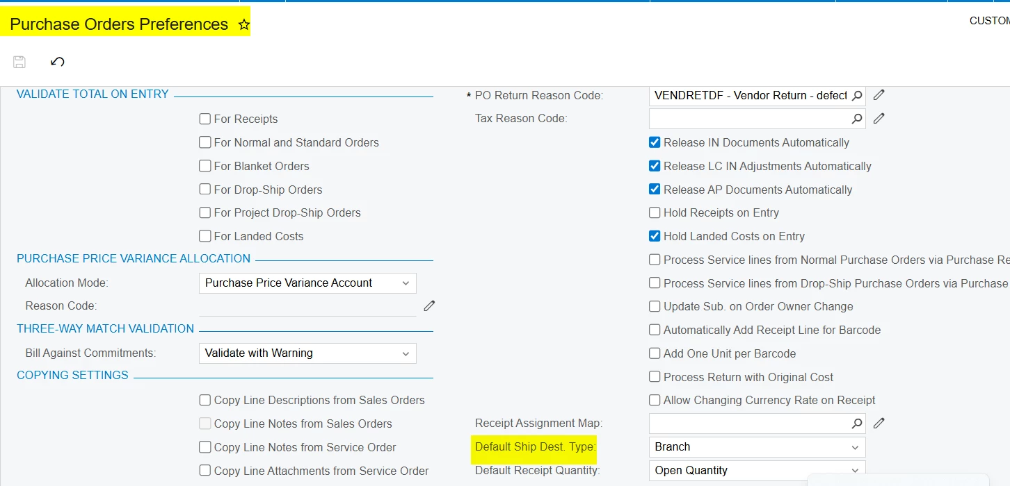 Hello, is there a way to change the Shipping destination Type under Requests? Currently it seems to default to Branch, we’d like it to default to Warehouse. Is this possible?”
