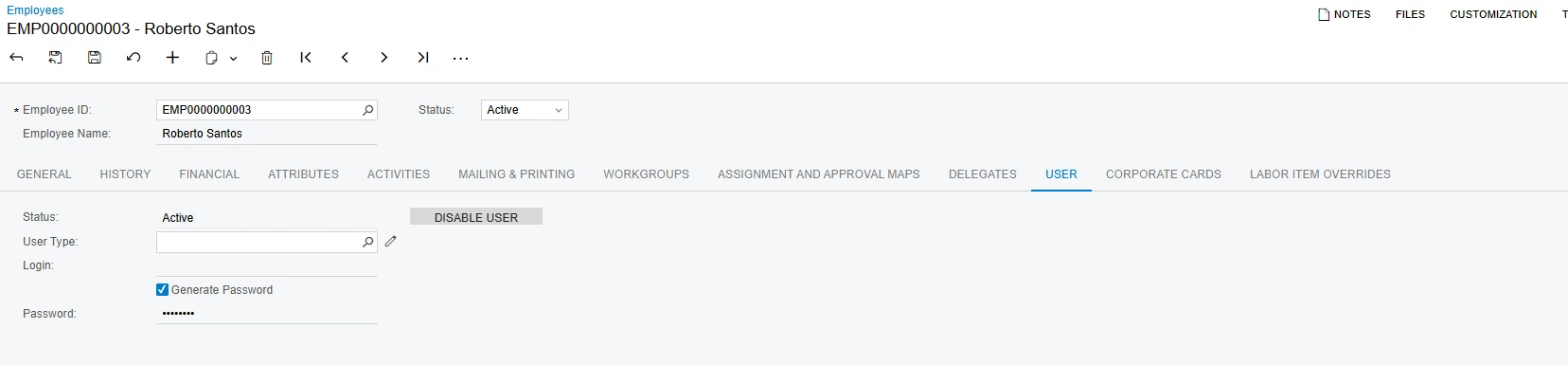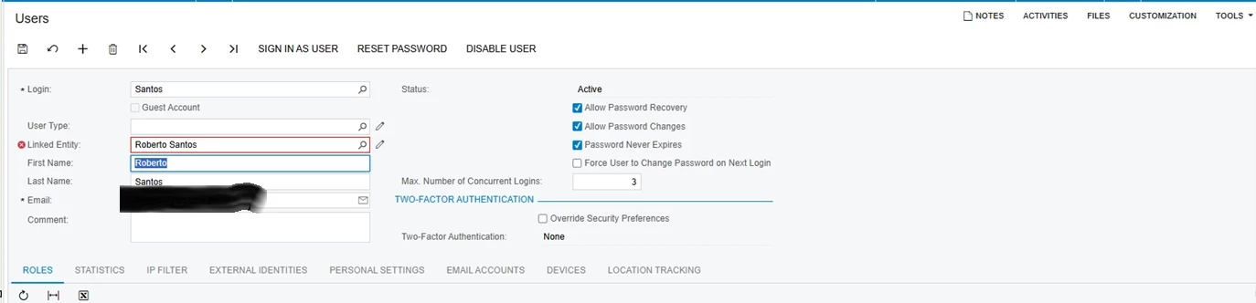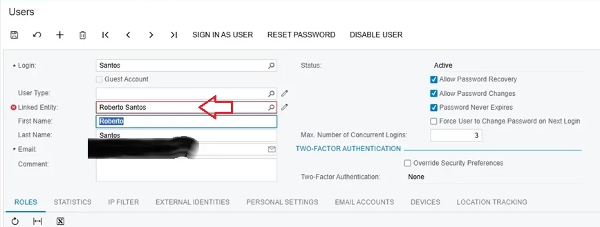 Try another alternative solution which is to create a new User similar to Santos User. Then select Linked Entity to "Reberto Santos" Employee.