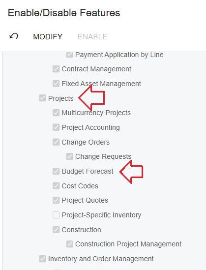 We want to set up the enable/disable for a new customer but when we try to set up there is no Project and budget forecast in the details. Is it because the license or Project is actually add on feature? Can somebody help me to explain about this? i really appreciate, thank you