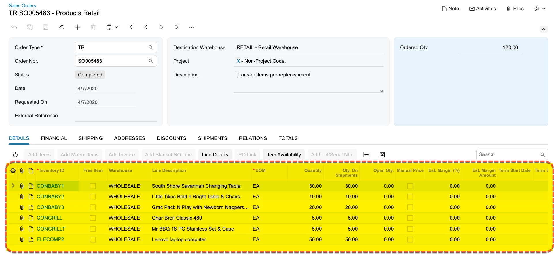 Creation or document detail lines are currently not supported. For example, users cannot create or update Sales Order detail lines in the Sales Order screen.