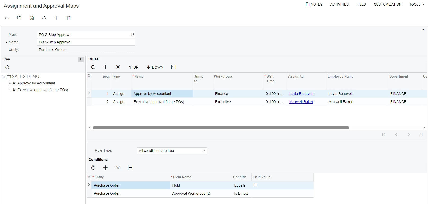 So should each step have an approve button? Or, will it step through the process? Right now, the first manager can approve, the second manager approves bidding, and then Purchasing sets up the PO.