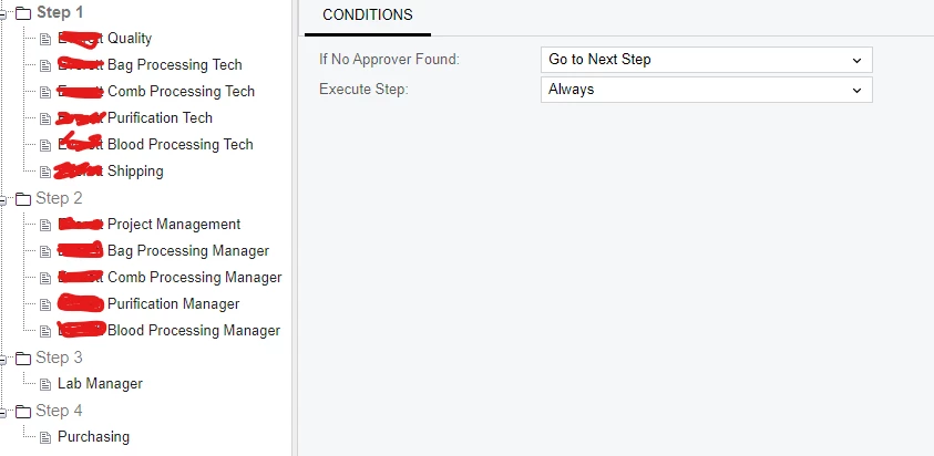 I have a multi-step approval map set up. With the first layer as a lab tech. They submit the requisition and their manager approves it, it then goes to the Lab Manager who then approves it. The last step is to go to our purchasing department where the PO is set up. I don’t think I’m understanding how everything is supposed to work at each step.