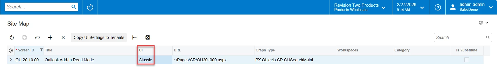 - Navigate to the Access Rights by Screen (SM201020) form.