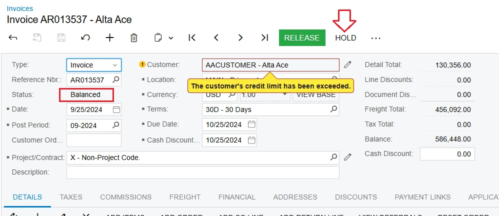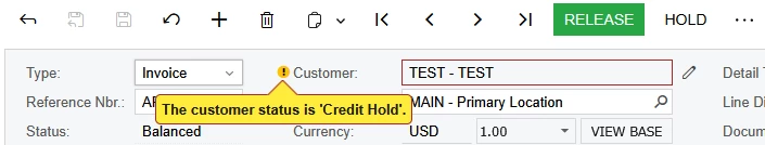 @nhatnghetinh Thank you for your response. I am asking about Invoices, not Sales Orders. The invoice is in Balanced status, so there is no Credit Hold to remove there - the error occurs when I try to release the Invoice: