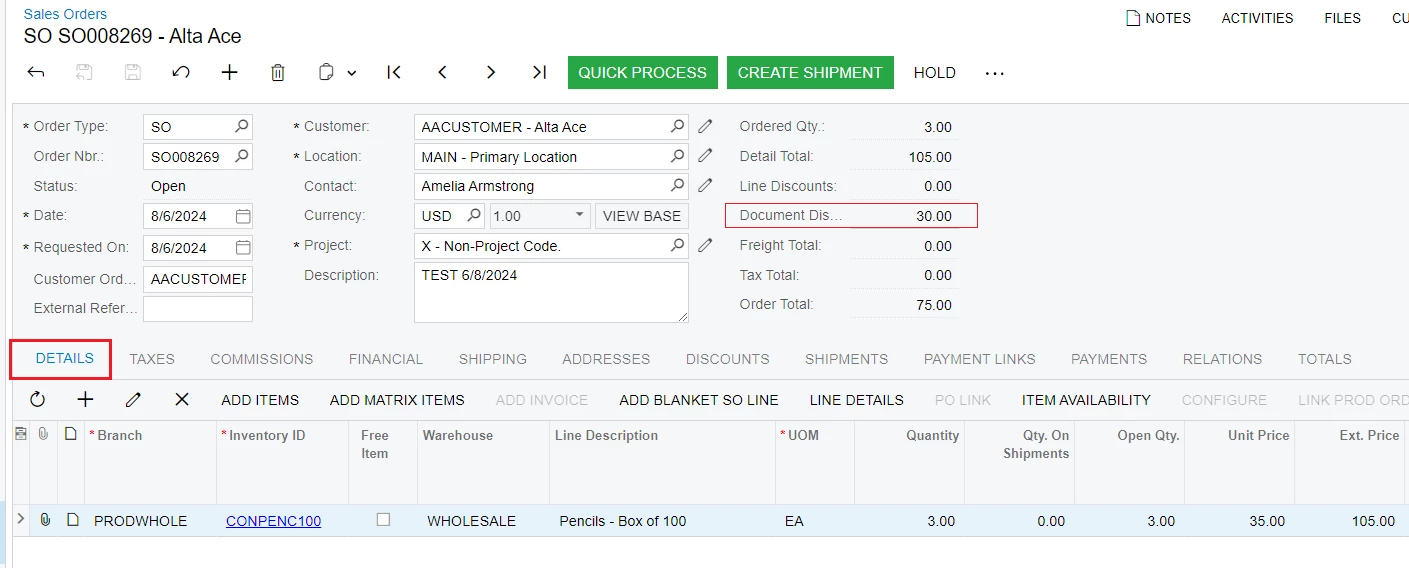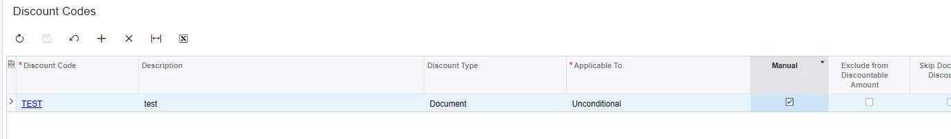 How do I enable a document-level discount code for a Customer that must be manually entered on a Sales Order?