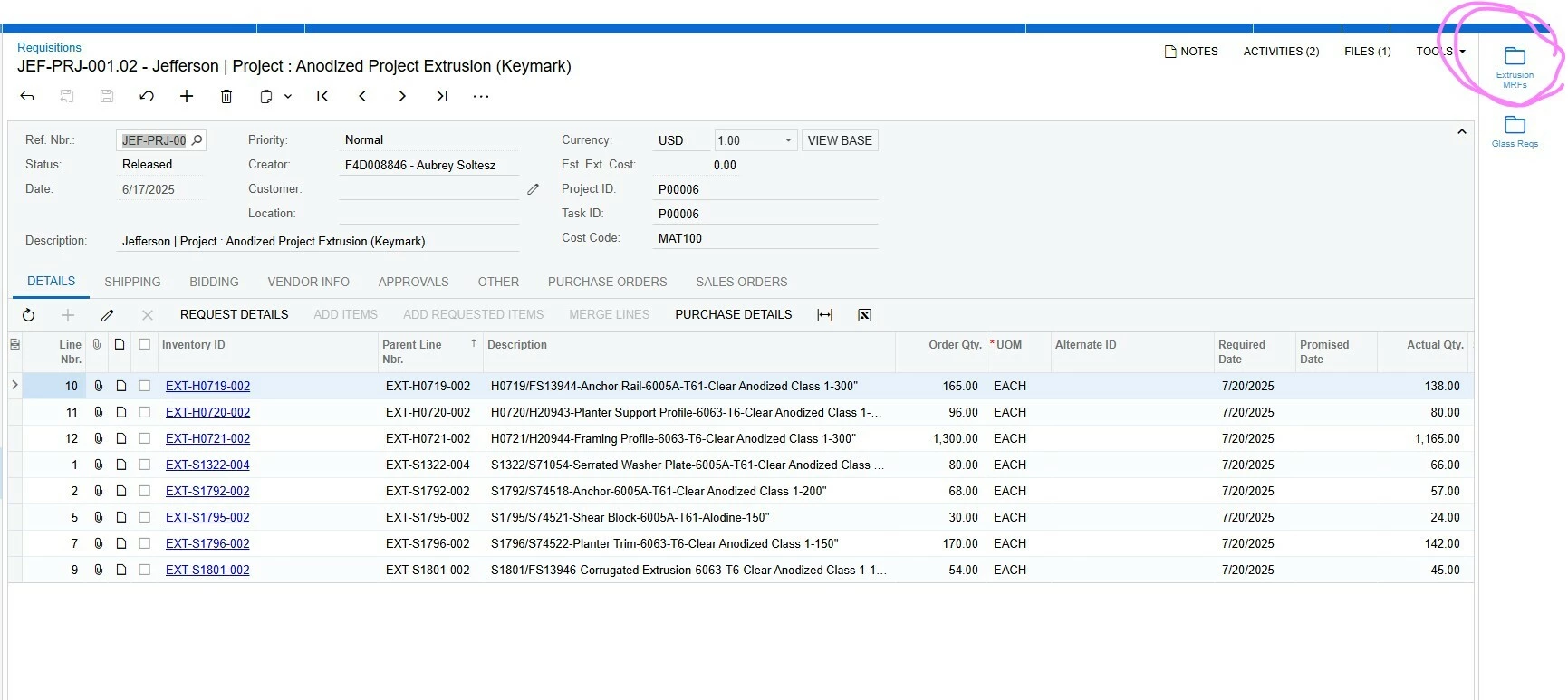 I am having an issue just with my own account. I have full allowances in Acumatica, but for some reason, only I am unable to view this Tab. Please see the attached screenshot. This tab is used to compile detailed specs on the individual items being requested. This screenshot is a copy of a requisition. Not sure how my setup changed or how to fix it.