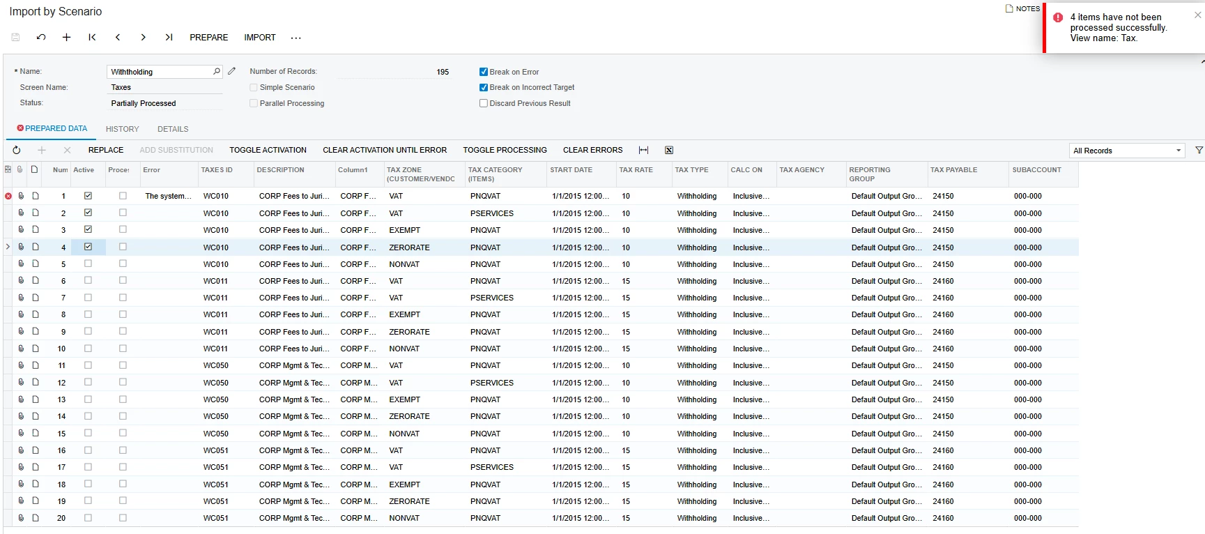 Hi. I need your help regarding importing the withholding tax. It says “The system failed to commit the TaxRevisions row.”