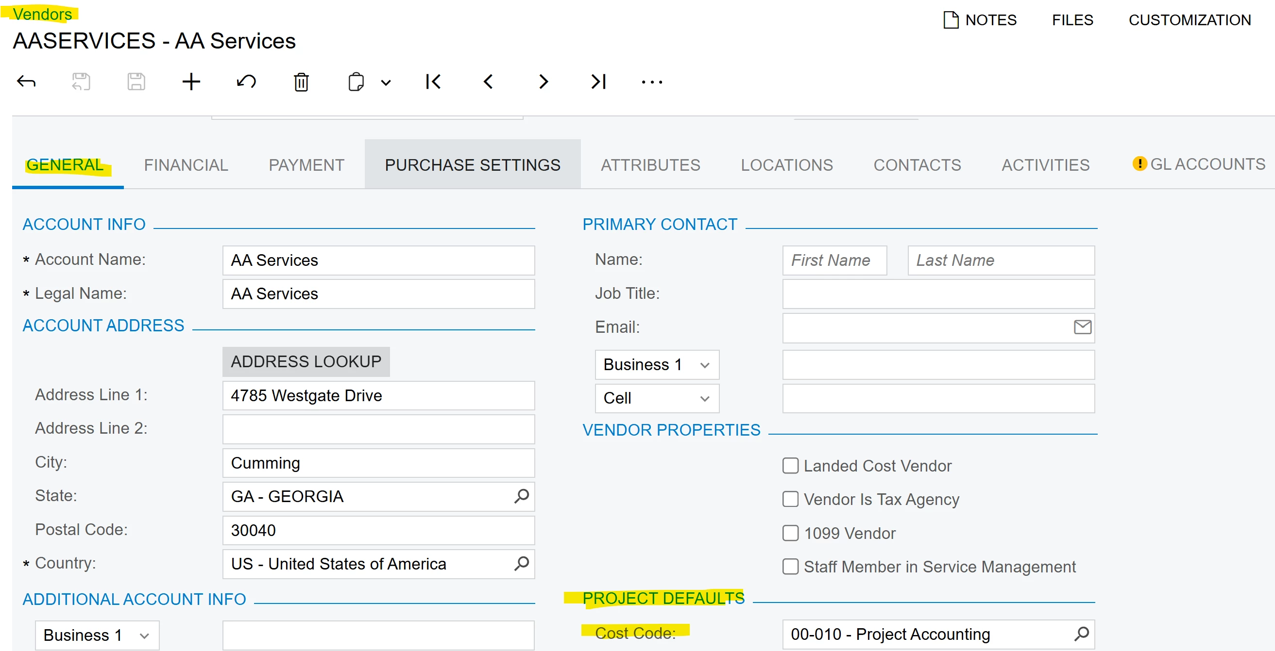 - Preassigning Tasks and Cost Codes - Is there a way to improve our workflow by having Acumatica automatically assign tasks and/or cost codes based on specific vendor and project? Ideally, when we select a vendor (and project), the system would prepopulate the correct task and cost code for all lines.