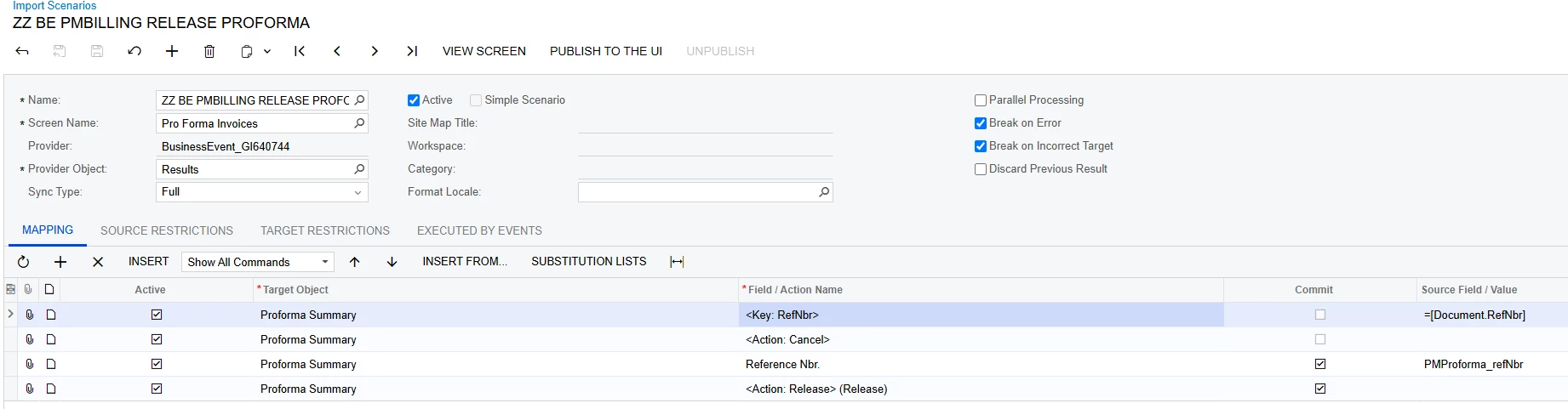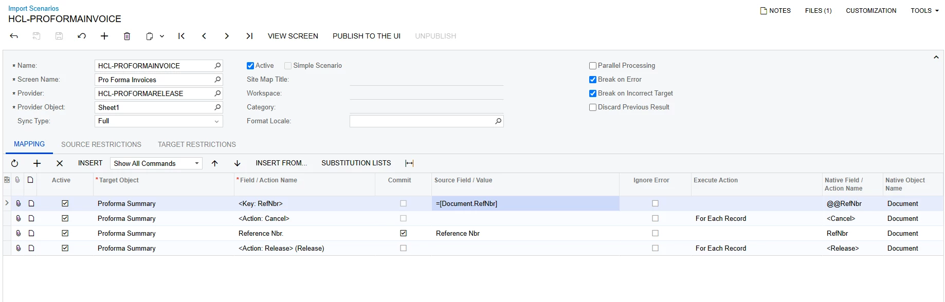 I'm trying to create a simple import scenario to release Proforma invoices. However, I consistently receive the error:
