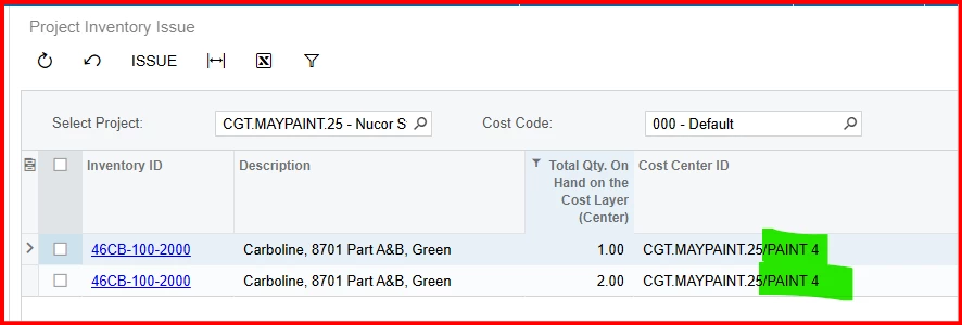 HI Heidi - The difference is in the screen above you are looking at Inventory Issues. The problem is that the system will allow you to perform an inventory transfer into a Revenue Only task. From there, you cannot issue out of it.  Happy to submit a case.