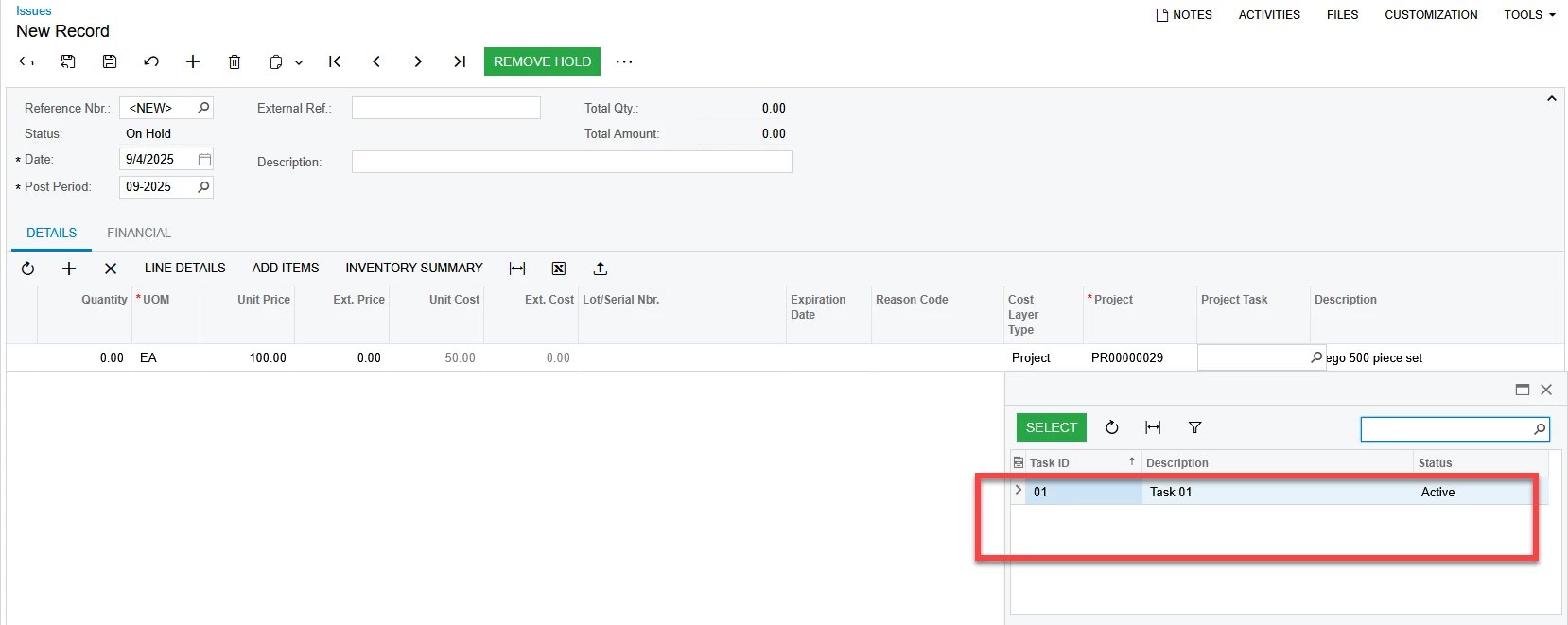 We have noticed that even if a Task in a project has been labeled as a ‘Revenue Only’ task, costs are still able to be assigned to it in the form of material purchases and inventory transfers. Is this how it was intended to function?