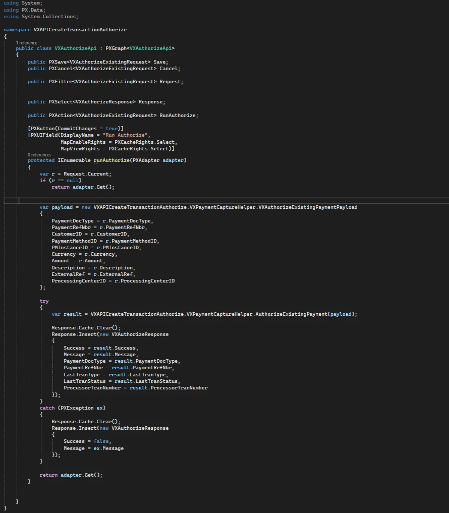 Basically, I have a function inside a helper class (for example: AuthorizeExistingPayment()), and I’d like to expose it through the Acumatica REST API so I can call it externally — something like: