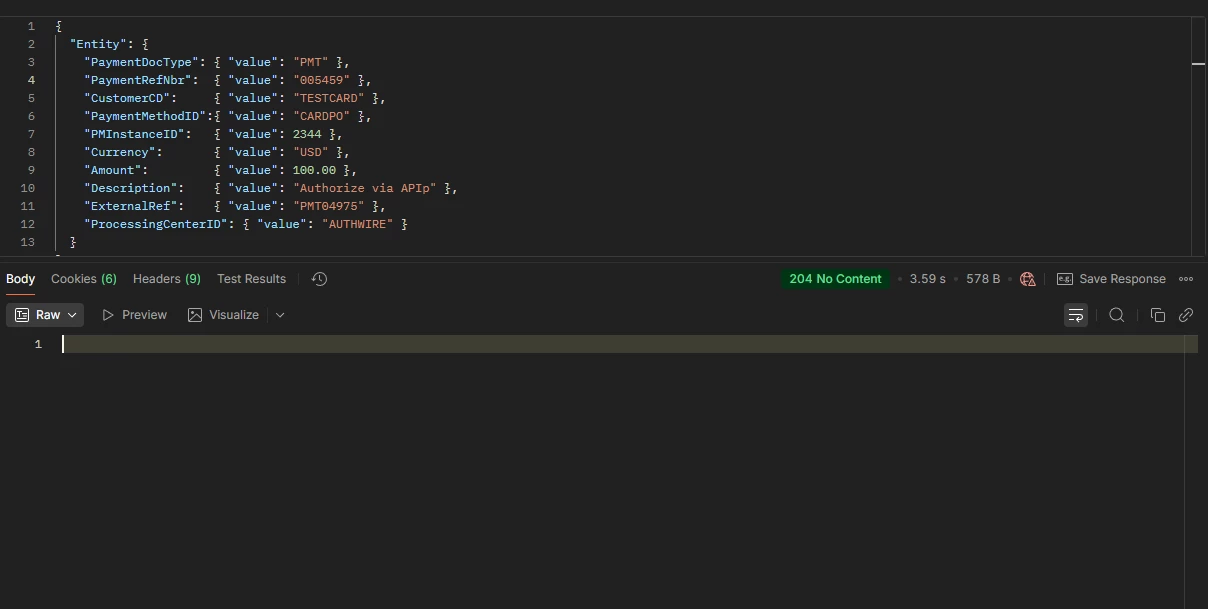 Acumatica always returns 204 No Content, even though I’ve inserted a record into the read-only view.