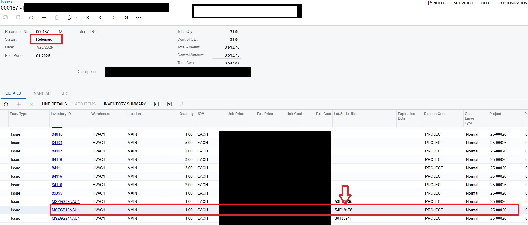 BUT… what if this was incorrect? How can this fixed, if at all? Is it possible to move this issued serialized inventory item from one project to another?