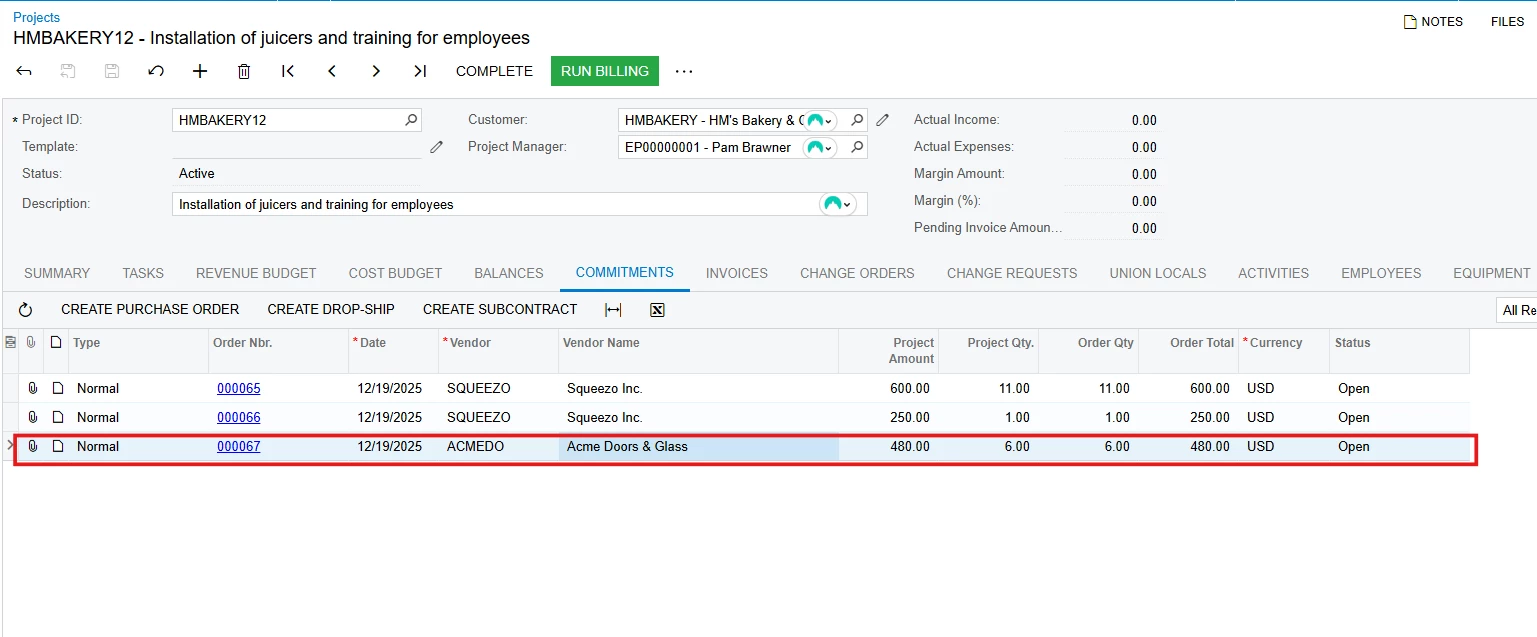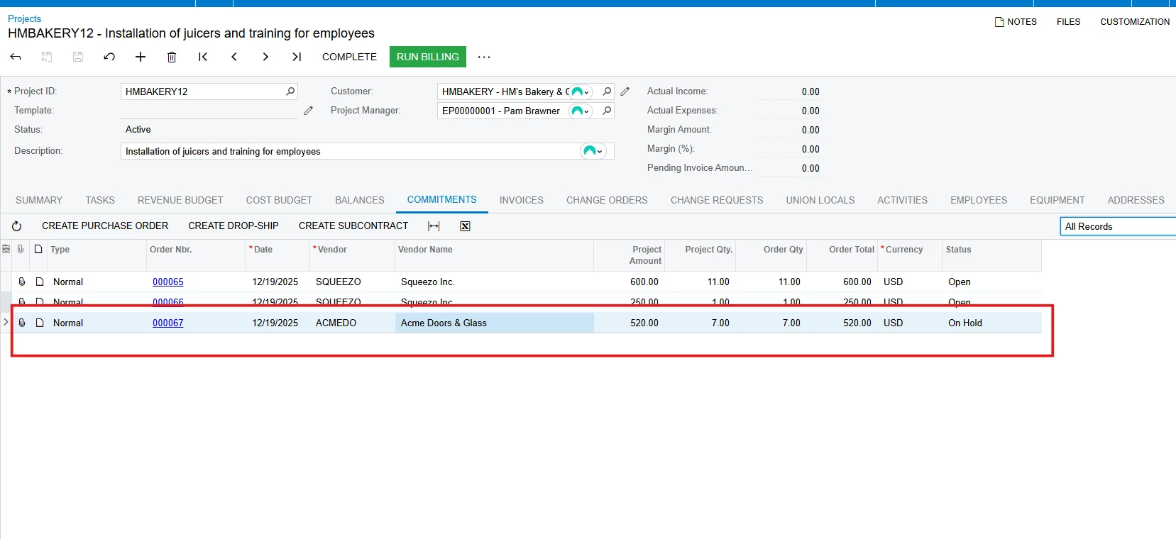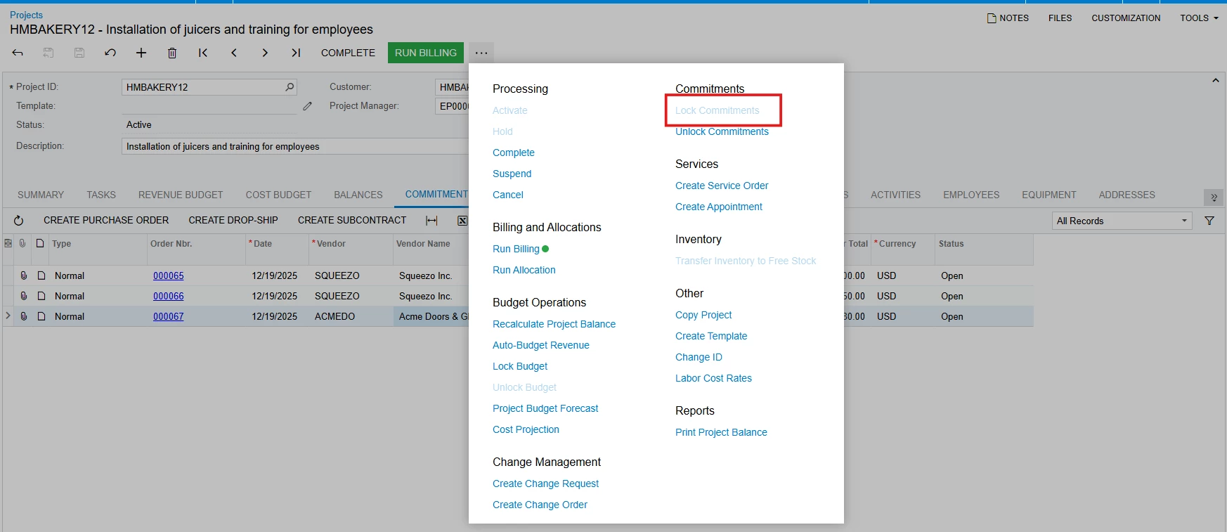 I have created a Project and a PO against the project when the commitments are allowed to the Project.