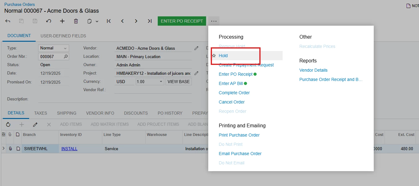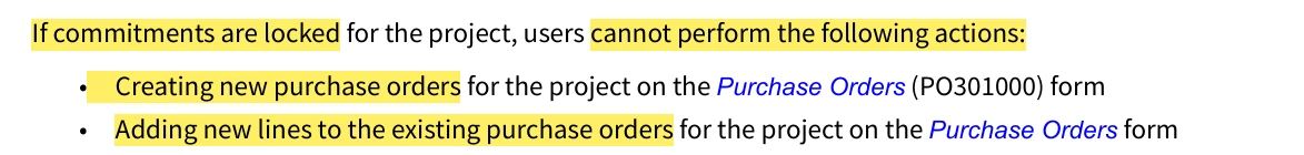 When i lock commitments to this project and go back to the PO, put the PO on hold and add new lines to this, the system is allowing me to change it instead of restricting it.