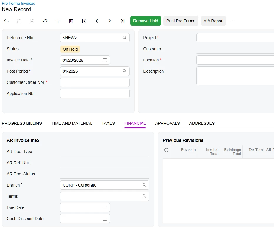 Hello we are on version 25.201.0213 and when using Modern UI on the pro forma invoice screen, users lose access to edit tax zone, exemption number, and tax type. While I will in the future be able to fix this by creating a customization to add the fields back to the view, currently don’t know how and this should have been standard out of the box with using Modern UI.