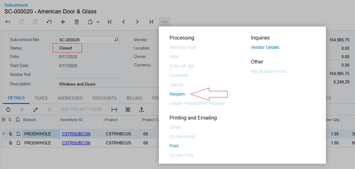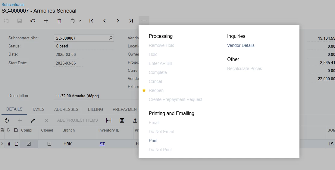 I used to be able to reopen subcontracts that were in Construction > Projects > Commitments. I have since been playing around with access rights and now it is no longer an option.