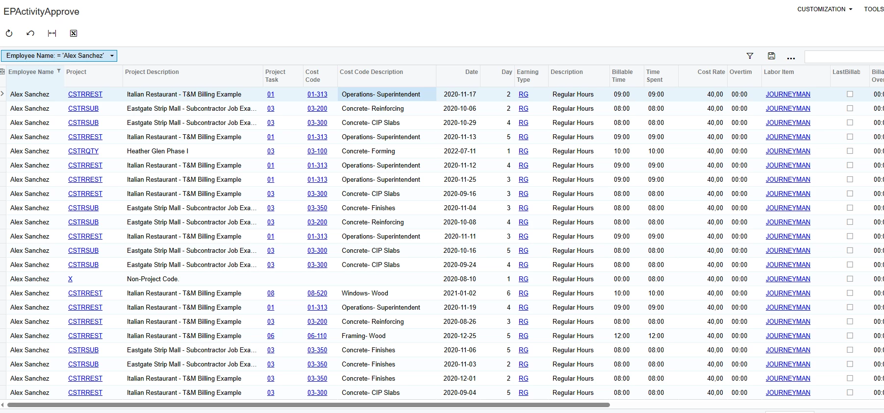 I’m looking for best practices on how to track employee time entries that are linked to specific project issues—ideally in the context of a daily field report.