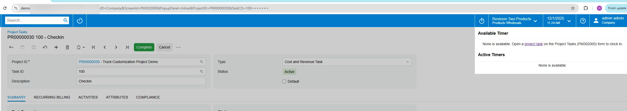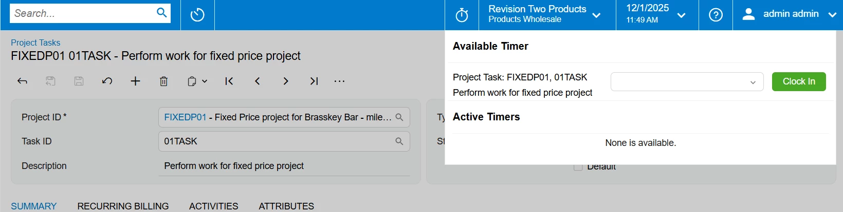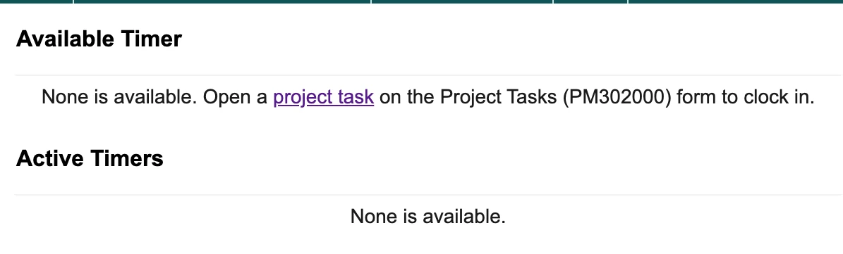 i have been trying to clock in on the Project tasks (PM302000) screen, but it still says :