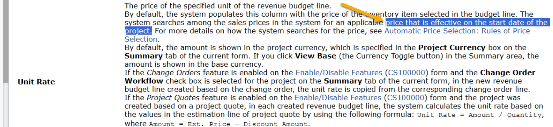 It looks like when putting up revenue budget in Project, the Unit Rate doesn’t populate price that is effective on the start date of the project.