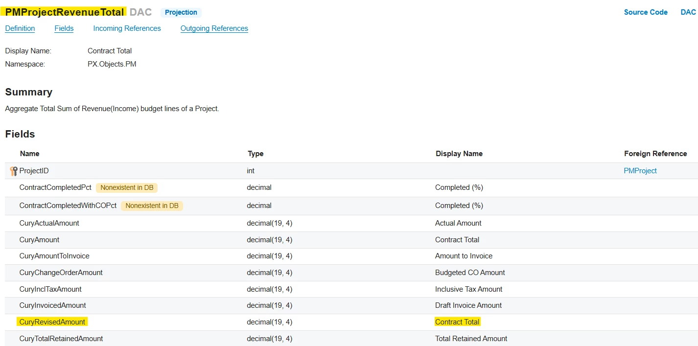 Acumatica has a PMProjectRevenueTotal DAC which I can join to the Projects GI to display projects’ Contract Total. Why does it not include a similar PMProjectExpenseTotal DAC? I can implement a custom DAC, but I’m wondering why Acumatica doesn’t have one, in case I’m overlooking a difficulty implementing one.