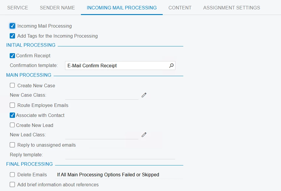 The email account is not set to automatically create a case because I’m requiring a contract for this case class. Below are screenshots of the email and case, followed by screenshots of settings for Email Account and Case Class, respectively. Thanks in advance!