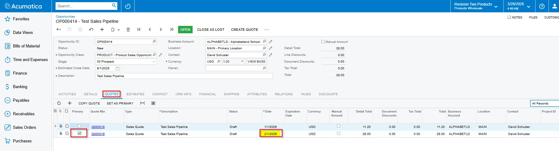 If an opportunity has quotes: