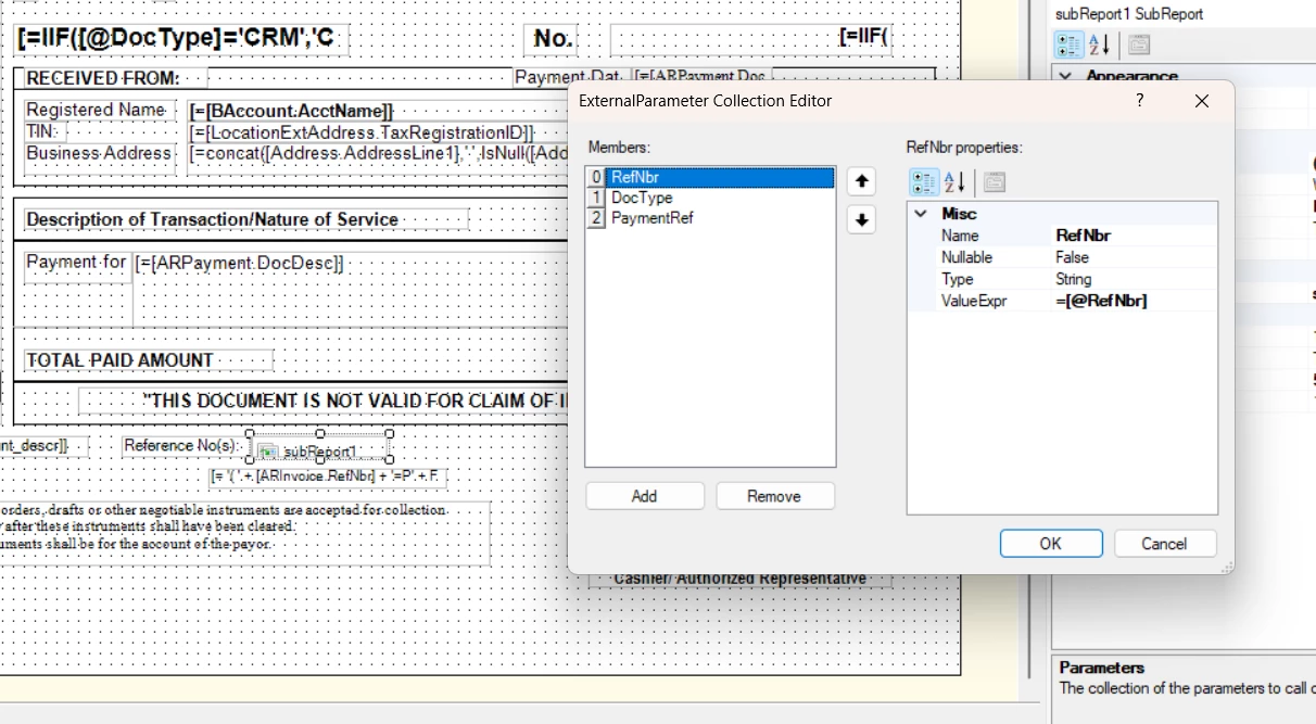Good day. I’m having an issue with my subreport. When I use the reference number range (from and to), it only retrieves the first reference number, and all the results end up being the same.