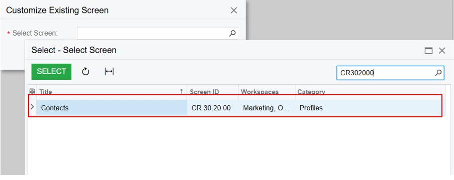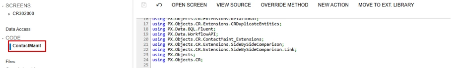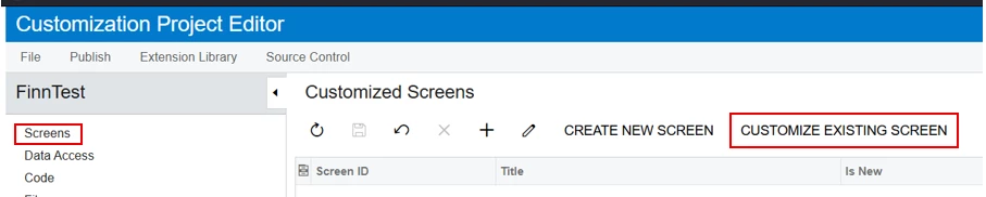 Open Project (FinnTest) & select screen which (Contact)