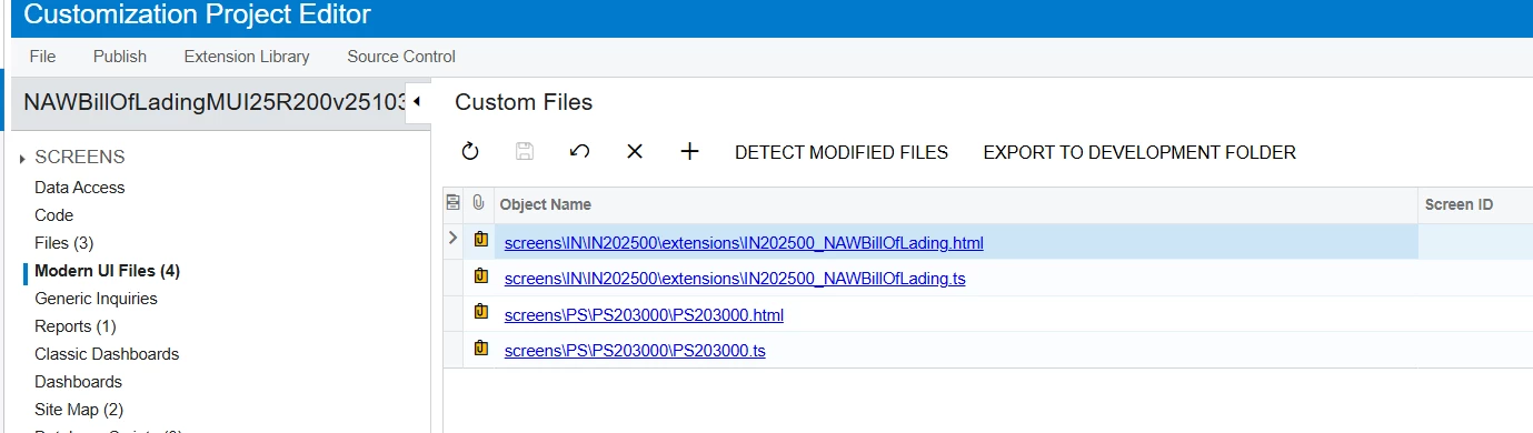 In 25R2, to be able to add the files to the Customization project you have to have the Modern UI files in the following path, FrontendSources\screen\src\development