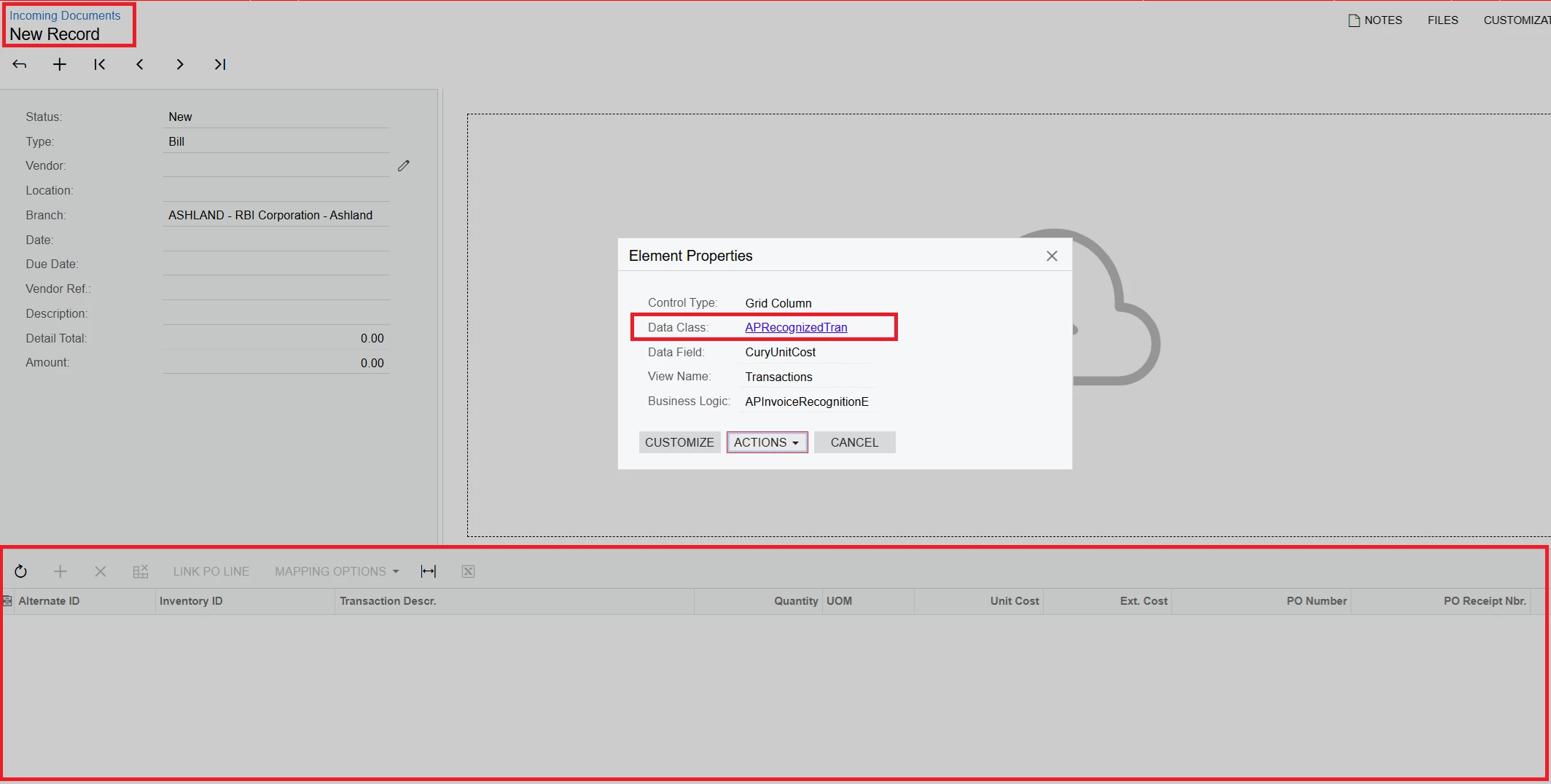I am not completely sure that I understand how the process works, but I think that the records are inserted in the APTran table after they save a recognized record, so the APTran DAC is not working for me.