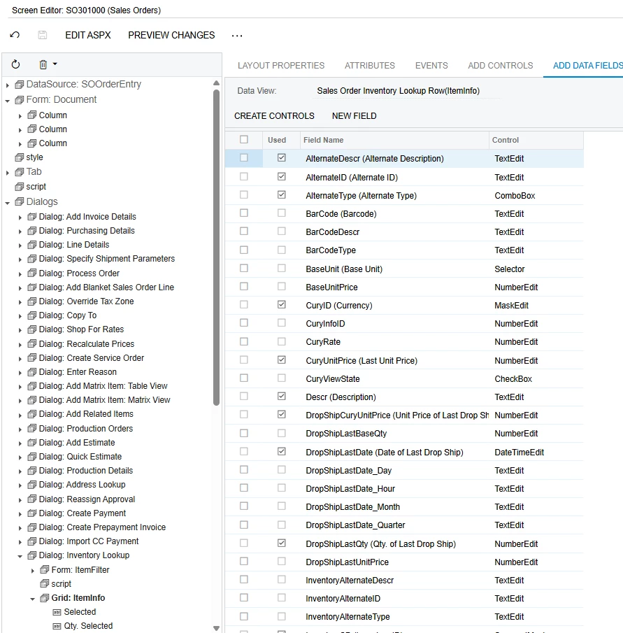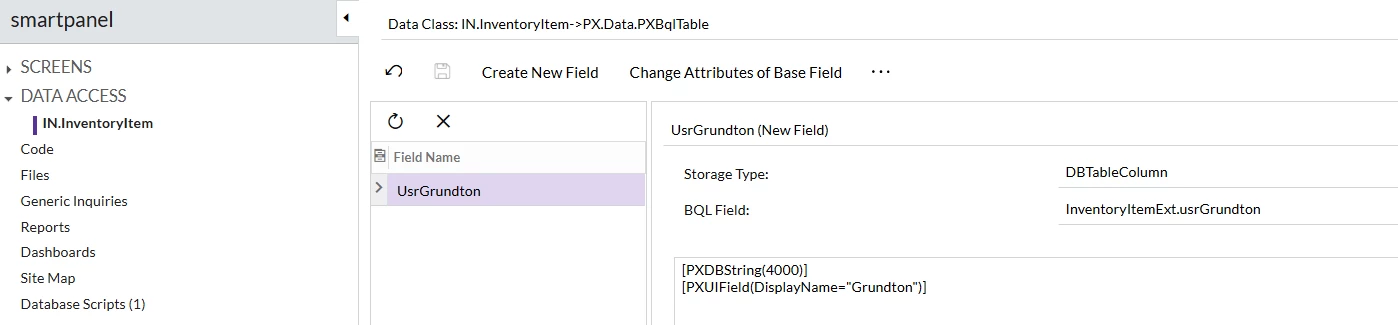 I have created a custom field called "Grundton" in the data class InventoryItem and would like it to be displayed in the Smart Panel (Inventory Lookup) on the quote screen so that I can filter by it.