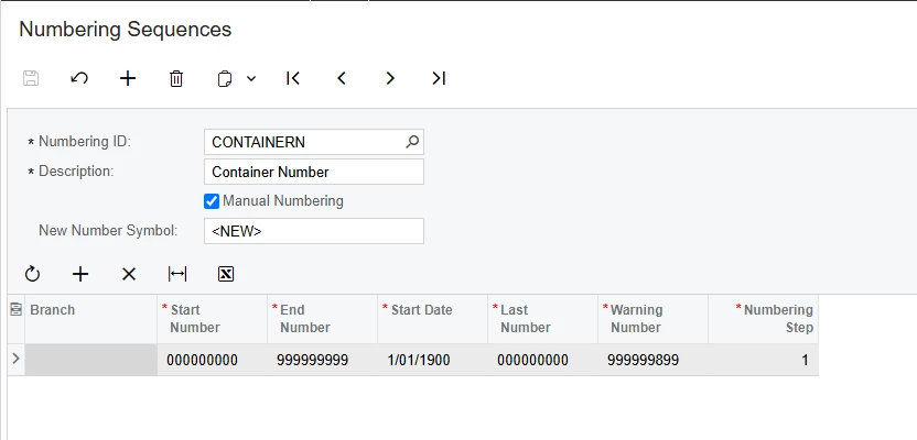 Hi I am trying to add numbering sequence logic to the below custom screen, but get Container ID cannot be empty error when trying to save the record.