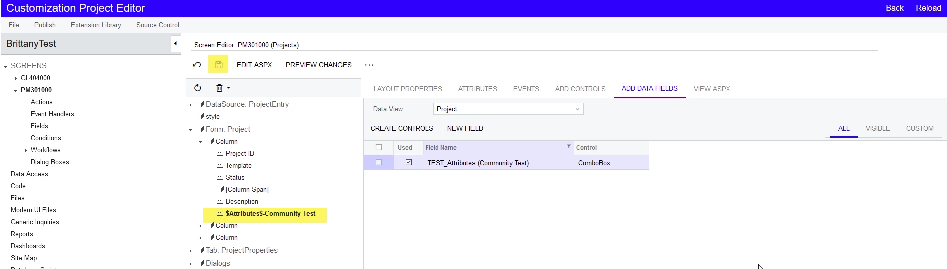 I have an attribute that we created a while back and until recently users were fine with having to go to the Attributes tab on the contacts screen to see the attribute and its value. I now have a request that seems simple enough, which is to make it so the attribute shows up at the top of the Contact screen right under Status. The attribute in question is a combo box attribute with some values that the user can select from. I open the customization project for the screen in question (302000) and go to the Add Data Fields and I can see the Attribute field in question under that All section. is isn’t visible in the Visible or Custom views. Not if that is significant or not.