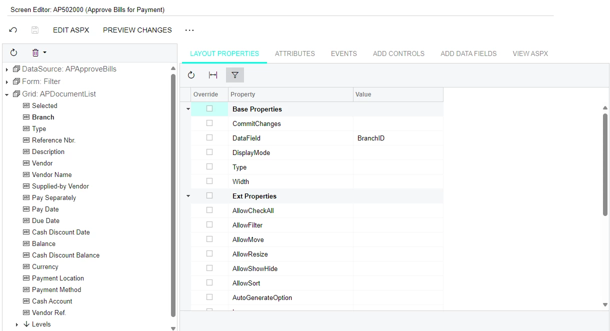 How can we add Branch ID column to the Grid on Approve Bills for Payment ?