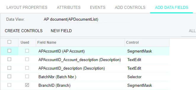Then press, the left tickbox for the BranchID Field, and then press create controls and publish the project.
