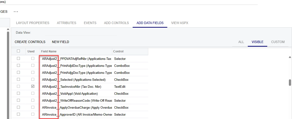 Hi, there is a custom field in Invoices and Memos screen called ‘Rental Agreement Nbr’ and this is also added in Application History tab of Payments and Applications screen. When sorting this column, I get the error: Unknown column 'ARRegister.UsrRANbr' in 'order clause' even though I have set the AllowSort to True. How do I allow sorting on this column?