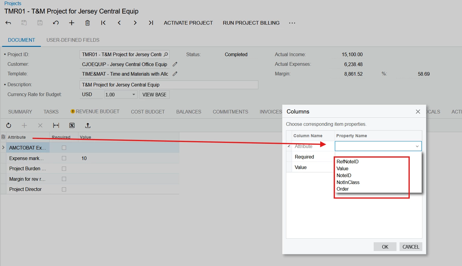 I am trying to enable this on the Projects form but the Attribute column is not visible and so, the import does not update the records