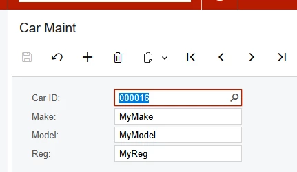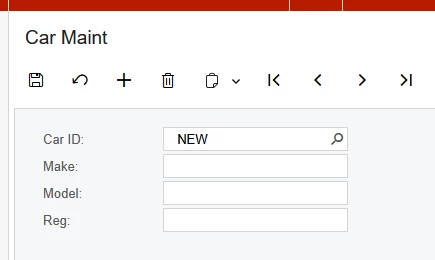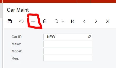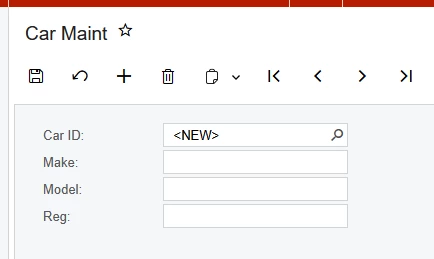 The custom screen is below. When I click add, the Car ID is set to ‘NEW’ not ‘<NEW>’.