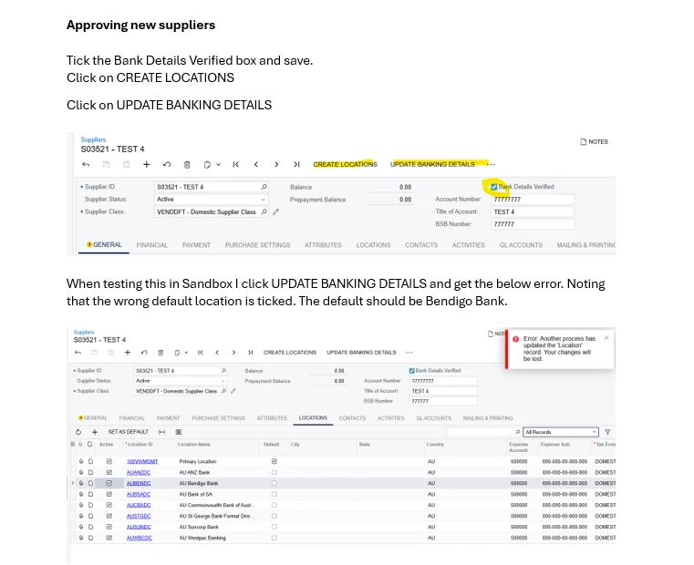 The error you’re encountering is caused by outdated Location data. Here’s what’s happening: when you update data in the view but continue using an old instance of an object you’ve already updated, the system throws this message. That’s because the next time you try to update it, the record no longer exists.