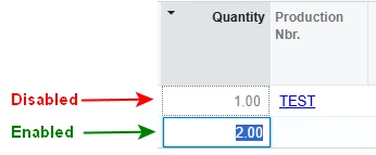 I am trying to disable the quantity field on a sales order whenever there is a linked production order. To be honest, im not even entirely sure what extension is adding this field to the soline. i dont see it on soline, or SOLineExt. I did find it on SOLineMFGOnly, but that seems to be just a projection. i tried adding the below code line to the quantity field and it does make the field readonly when there is a production order, but if i unlink the production order or delete the production order the quantity field is still disabled. i looked at the below post but when i try to use SOLineMFGOnly in the get extension, it doesnt recognize it.