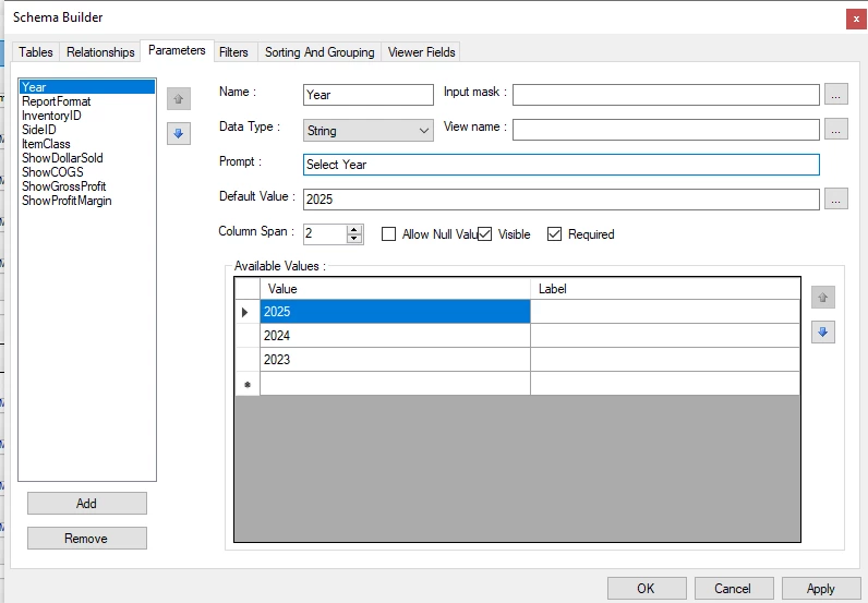 I have a parameter in the report, but it does not work in the Modern UI on the Report Template page. When I click the drop-down, it does not set a value. In the Classic UI, it works correctly. How can I fix this?