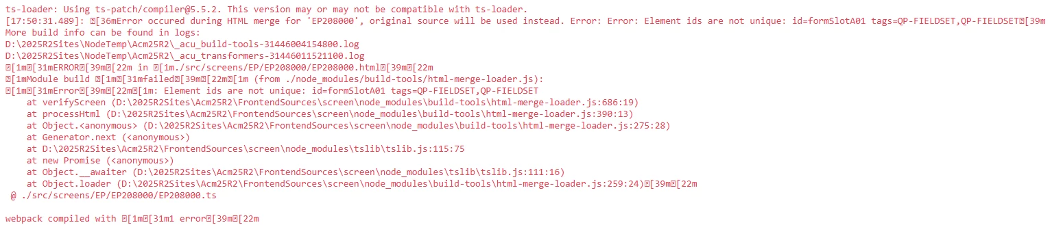 Error occured during HTML merge for 'EP208000', original source will be used instead. Error: Error: Element ids are not unique: id=formSlotA01 tags=QP-FIELDSET,QP-FIELDSET