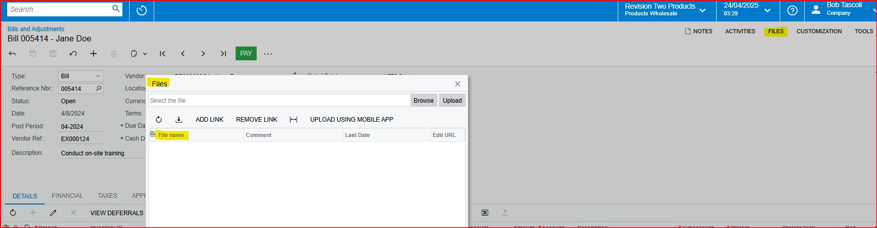 Hi, I’m trying to increase the width of the “File name” column on the “Files” screen (accessed via any screen → FILES). However, I wasn’t able to locate this screen in the customization project. Do you know what the screen name might be or where I can find it?