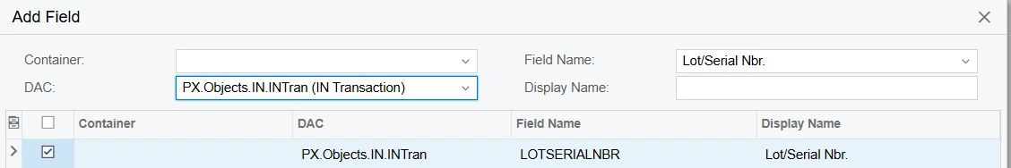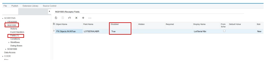 I have been working on trying to disable the Lot/Serial Nbr. selector field on the grid section of the Inventory Receipts screen (IN301000) through code, but it’s not working as expected.